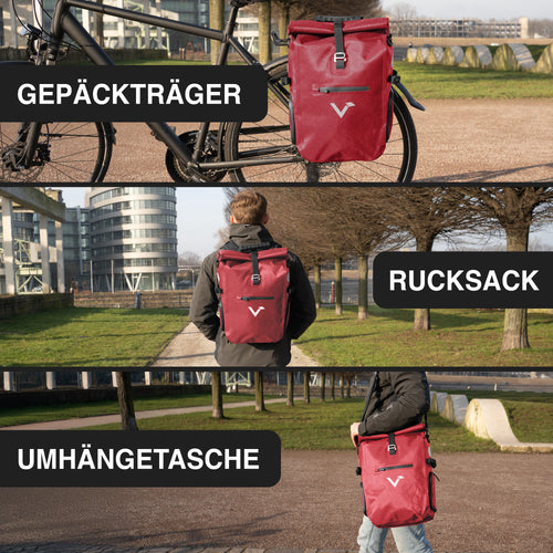 Ton Valkental est aussi grand que tu en as besoin. Grâce à la fermeture roll-top, notre sacoche de vélo peut être réduite à 18L, mais en même temps elle peut être agrandie jusqu'à 25L.