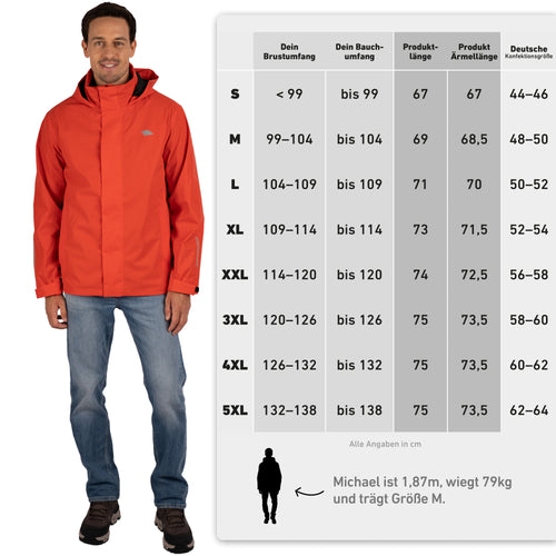 Une veste sensationnelle ! Avec mon 1,90 sportif, je voulais prendre une taille XL, mais faute de disponibilité, j'en ai commandé une en taille L et j'en suis très content. Elle s'adapte parfaitement, les manches sont tout de même assez longues, elle est très chaude avec la polaire et la poche pour téléphone portable cachée à l'extérieur est top. Ah oui : elle brille d'un blanc éclatant, ce qui était la raison principale de mon achat.