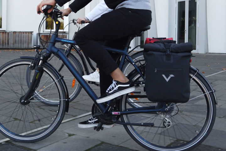Ton Valkental est aussi grand que tu en as besoin. Grâce à la fermeture Rolltop, notre sacoche de vélo peut être réduite à 19L, mais en même temps elle peut être agrandie jusqu'à 26L.