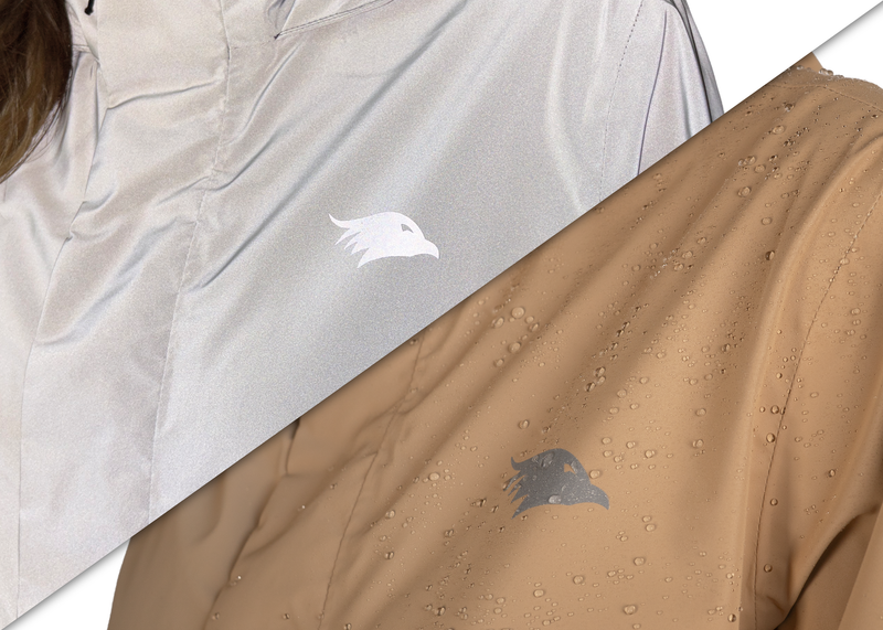 Grâce à la nouvelle technologie LUMI-TEX® Pro, tu restes au sec et visible. La veste est entièrement réfléchissante dans l'obscurité et le revêtement déperlant DWR te protège efficacement de la pluie.