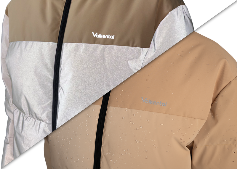 Grâce à la nouvelle technologie LUMI-TEX® Pro, tu restes au sec et visible. La veste est entièrement réfléchissante dans l'obscurité et te protège également des averses avec une colonne d'eau de 3.000 mm.