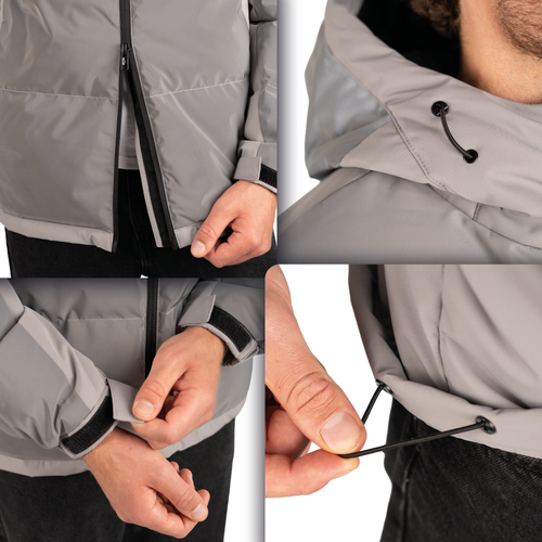 Contrôle maximal de l'ajustement et du confort : possibilités de réglage sur la capuche, les hanches et les manches, plus fermeture éclair à double sens - fonctionnelle jusque dans les moindres détails.