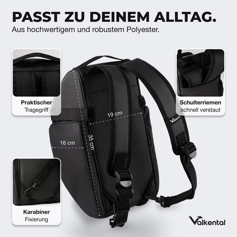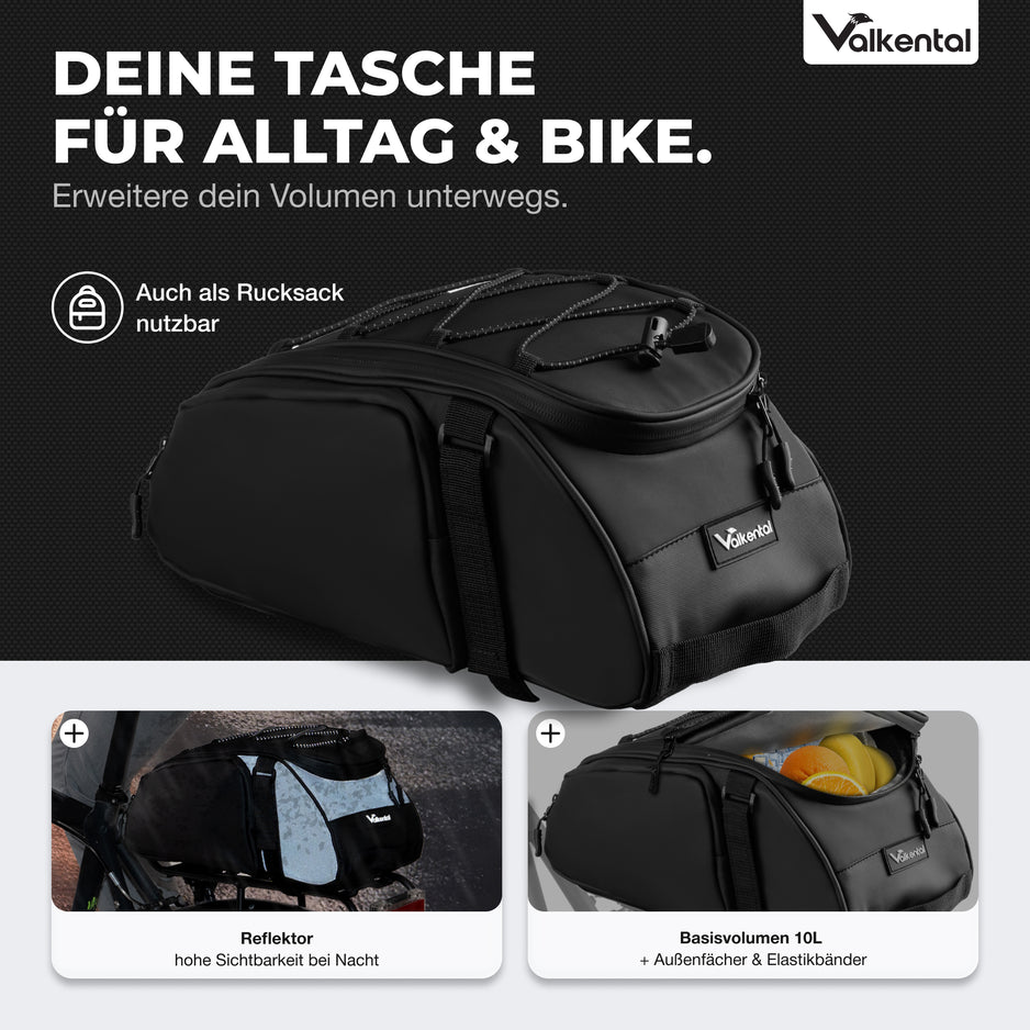 Le ValkOne est une solution polyvalente qui combine un sac à dos complet, une sacoche de porte-bagages et une sacoche à bandoulière. Plus besoin de se contenter de porter son sac de porte-bagages d'une seule main ou de porter un sac à dos sur le dos pendant le vélo. Comme le disent si bien les propriétaires de Valkental : « La vie est tout simplement plus agréable quand on a les mains libres ».