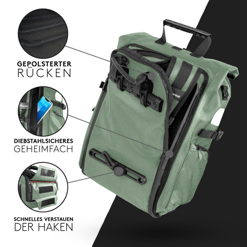 Le ValkOne est une solution polyvalente qui combine un sac à dos complet, une sacoche de porte-bagages et une sacoche à bandoulière. Plus besoin de se contenter de porter son sac de porte-bagages d'une seule main ou de porter un sac à dos sur le dos pendant le vélo. Comme le disent si bien les propriétaires de Valkental : « La vie est tout simplement plus agréable quand on a les mains libres ».